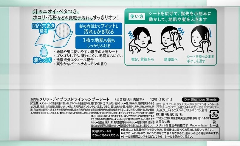 - メリットデイプラス ドライシャンプーシート 12枚入