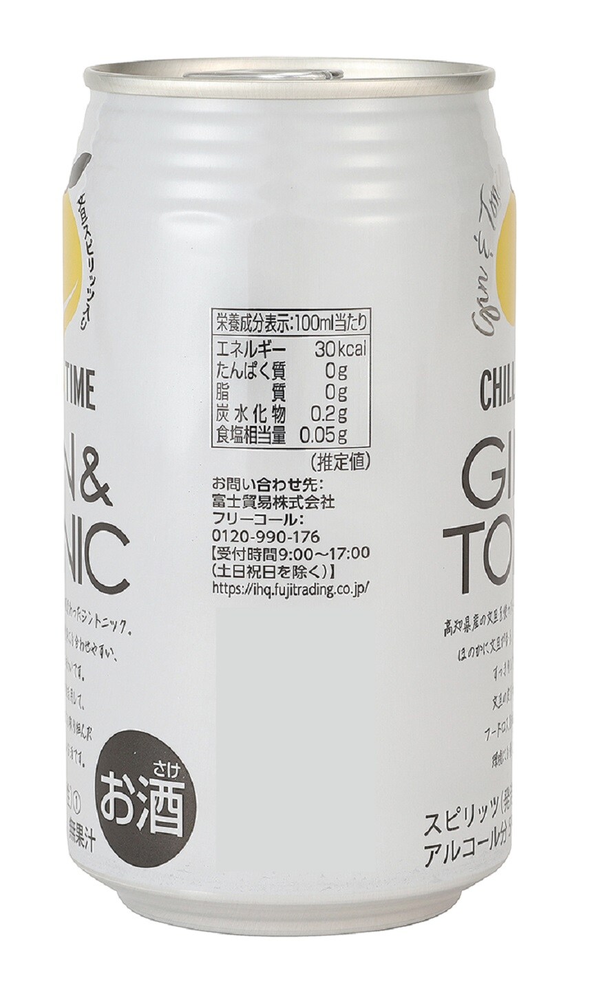 [24本]富士貿易 チルタイム ジントニック 文旦 スピリッツ入り 350ml | ほのかに文旦が香る、食事にも合わせやすい、すっきりした味わいが魅力