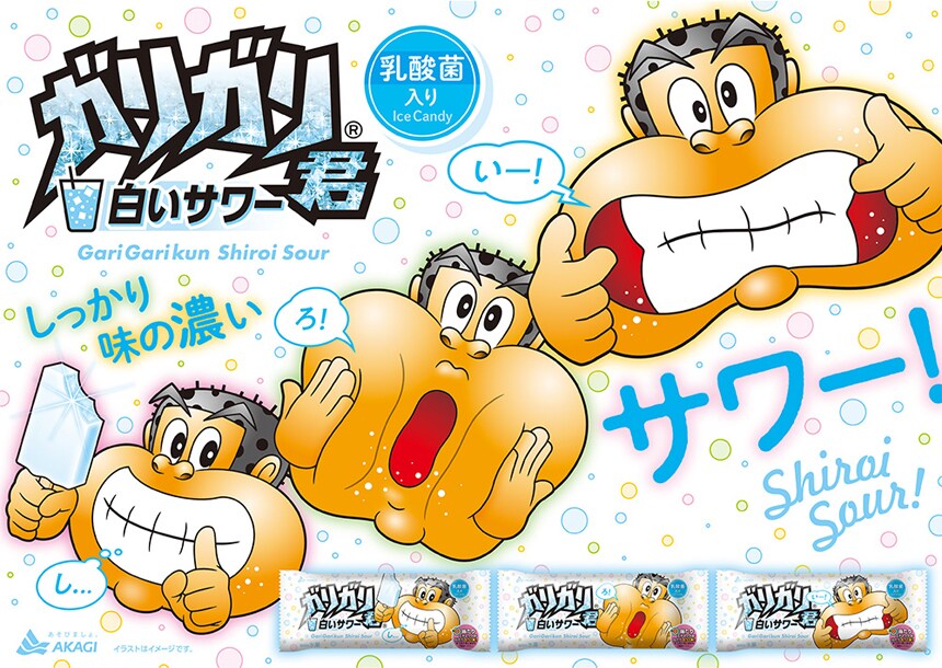 白いサワー味のアイスの中に、ガリガリッとした食感が特徴の白いサワー味のかき氷を入れたアイスキャンディーです。