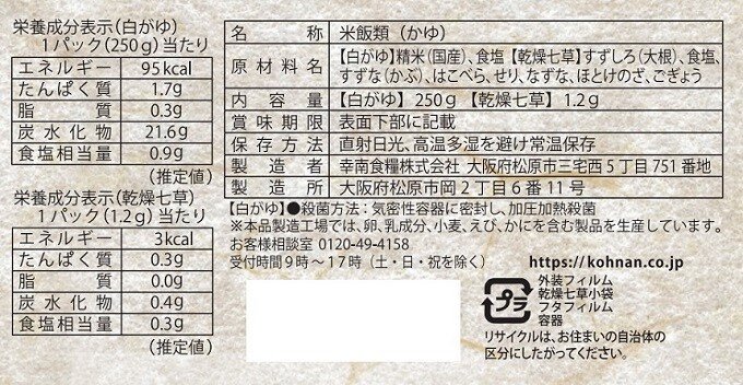 - (白がゆ250g、乾燥七草1.2g)×24個