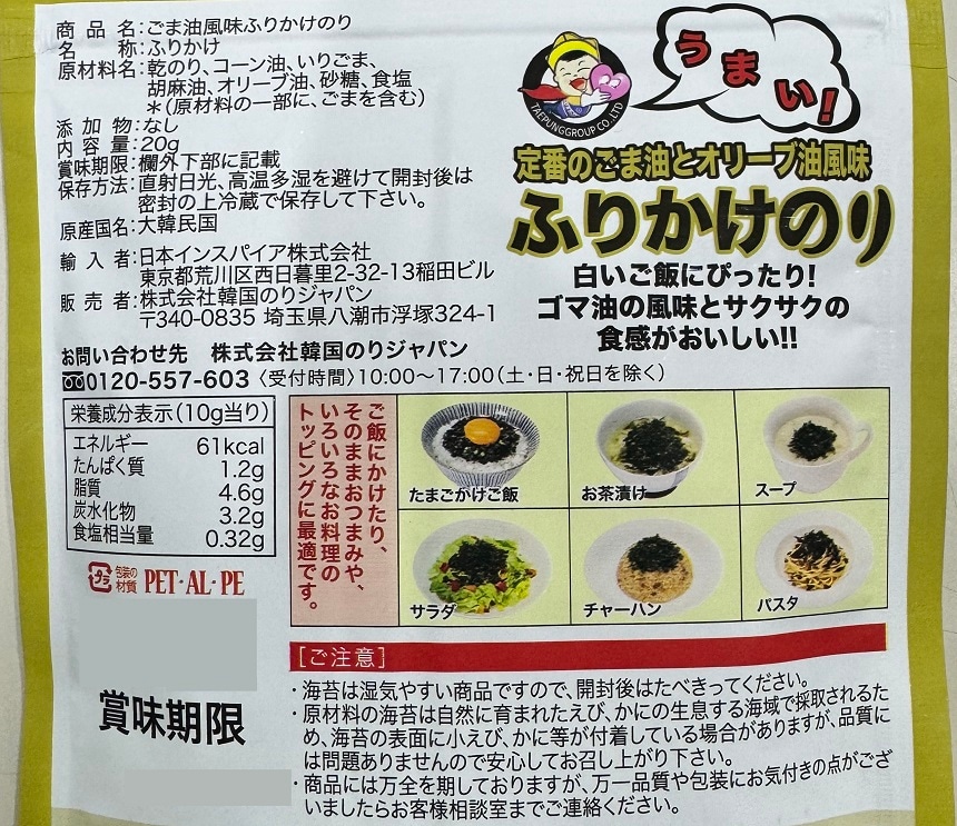 [30袋]韓国のりジャパン ごま油風味ふりかけのり 20g | 韓国定番の味