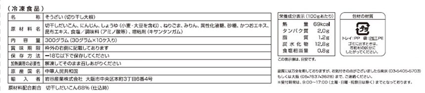 [計120食]イワタニフーズ 小分け惣菜 切り干し大根 300g | お弁当や小鉢に最適!冷凍のまま1食分取り出して自然解凍でお召し上がりいただけます。