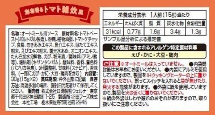 [60個]日清製粉ウェルナ Smart Table オートミール専用ソース 海老香るトマト雑炊風 30g(15g×2人前) | レンジで簡単!