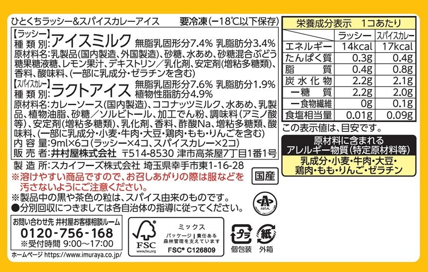 [54箱]井村屋 ラッシー&スパイスカレーアイス 9ml | カレー2個とラッシー4個をセットにした、ひとくちアイスのアソートです。