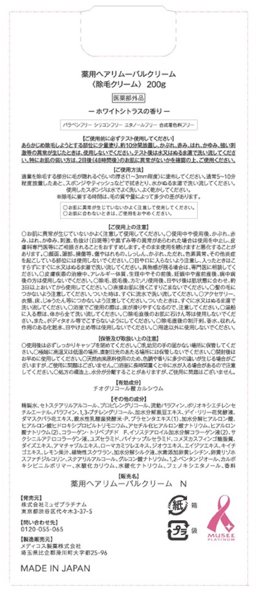 [3個]【医薬部外品】ミュゼプラチナム メンズ薬用ヘアリムーバルクリーム 200g | お風呂で塗るだけ、除毛しながら美肌に整えるミュゼの本格除毛クリーム。