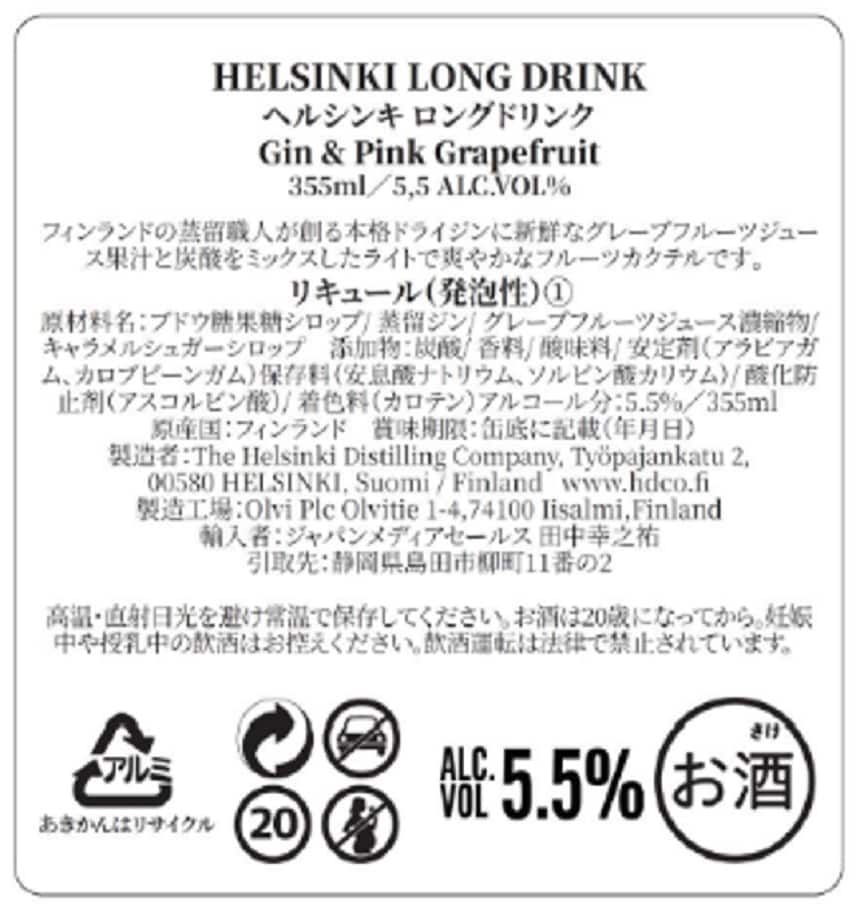 - ・ヘルシンキ ロングドリンク ジン&ピンクグレープフルーツ 355ml×24本