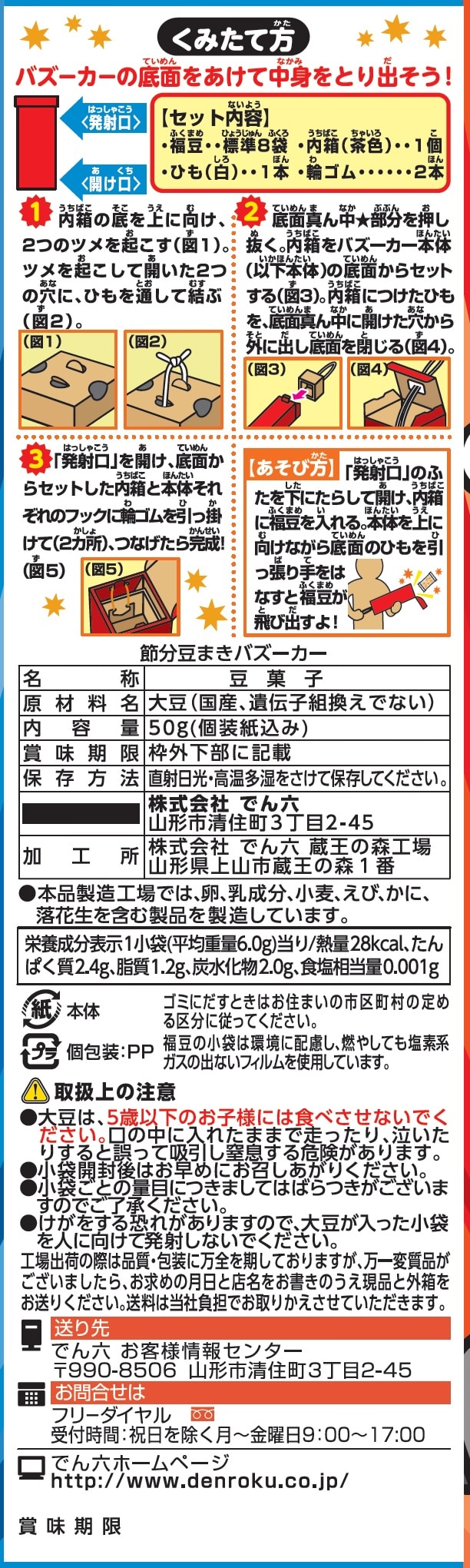 [16個]でん六 節分豆まきバズーカー 50g | 国産大豆を100%使用した小袋福豆入り。