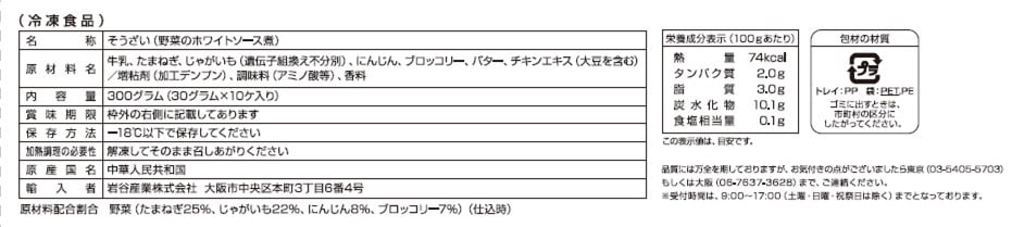 ・小分け惣菜 野菜のホワイトソース煮 300g(30g×10食)×4個