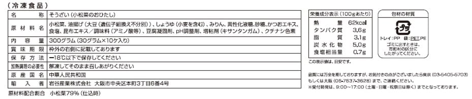 ・小分け惣菜 小松菜のおひたし 300g(30g×10食)×4個
