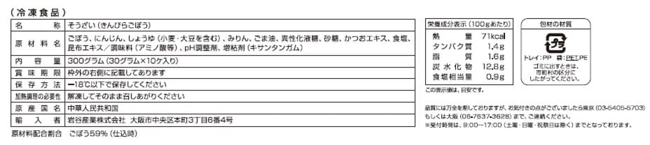 ・小分け惣菜 きんぴらごぼう 300g(30g×10食)×4個