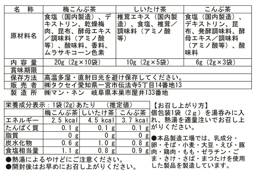 - 梅こんぶ茶、しいたけ茶、こんぶ茶 詰合せ