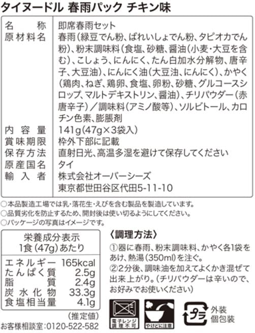 - タイヌードル 春雨パック チキン味 141g(3袋)