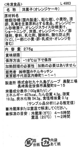 - 帝国ホテルキッチン オレンジケーキ 275g