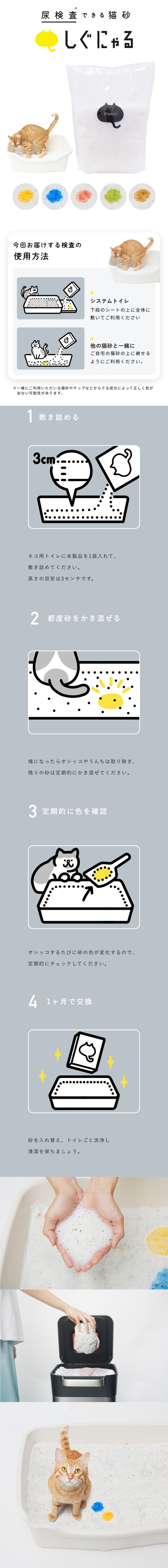 ・尿検査できる猫砂「しぐにゃる」忙しい飼い主さんと、大切なネコの健康を思って、誕生した猫砂です。