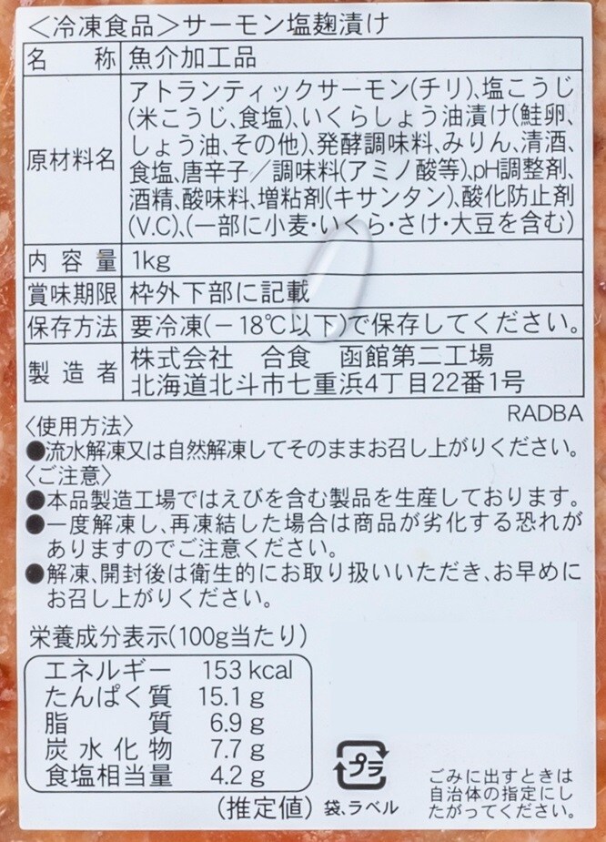 [3袋]合食 サーモン塩麴漬け 1kg | サーモンとイクラを塩麴で漬込みました。トロッとした食感と旨味が特徴です。