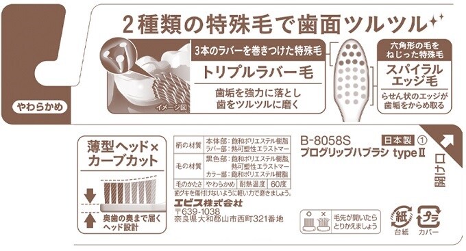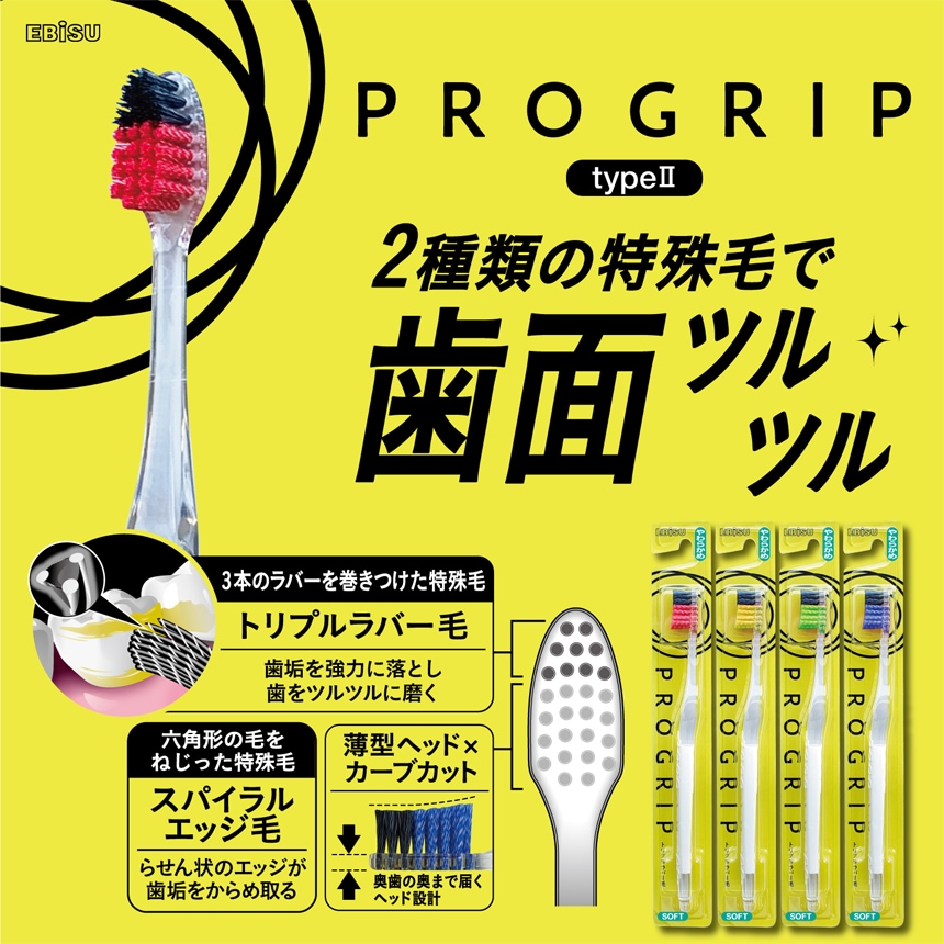 [36本]エビス プログリップ ハブラシ typeII やわらかめ | 2種類の特殊毛で歯垢を落とす
