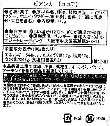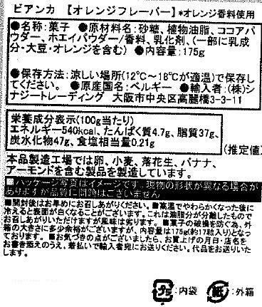砂糖、植物油脂、ココアパウダー、ホエイパウダー/香料、乳化剤(一部に乳製品・大豆・オレンジを含む)