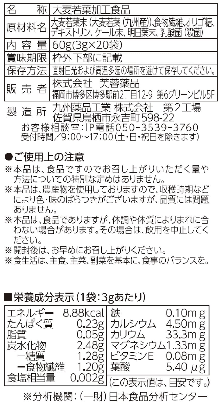 - 3種の九州産野菜青汁+乳酸菌 60g(3g×20包)