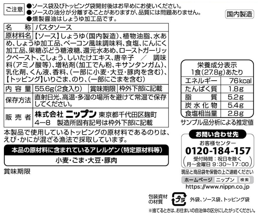 - ・和パスタ好きのための 燻製醤油&ペッパー 55.6g(2食入)×8袋