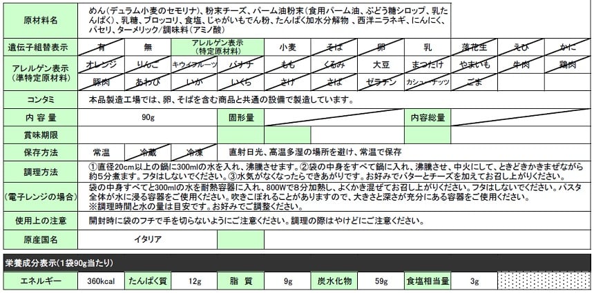 - エスプレッソパスタ・チーズ&ブロッコリ 90g