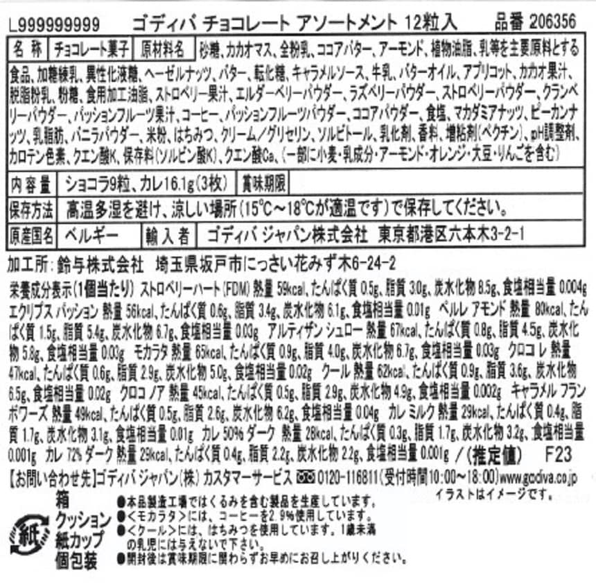 [3箱]ゴディバジャパン ゴディバ チョコレート アソートメント 12粒入