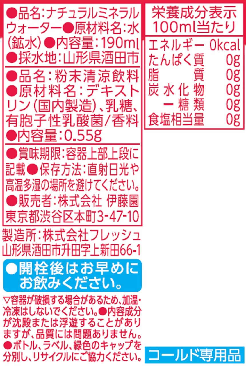 - パウダーイン 生きて腸に届く乳酸菌 WATER PET 190ml