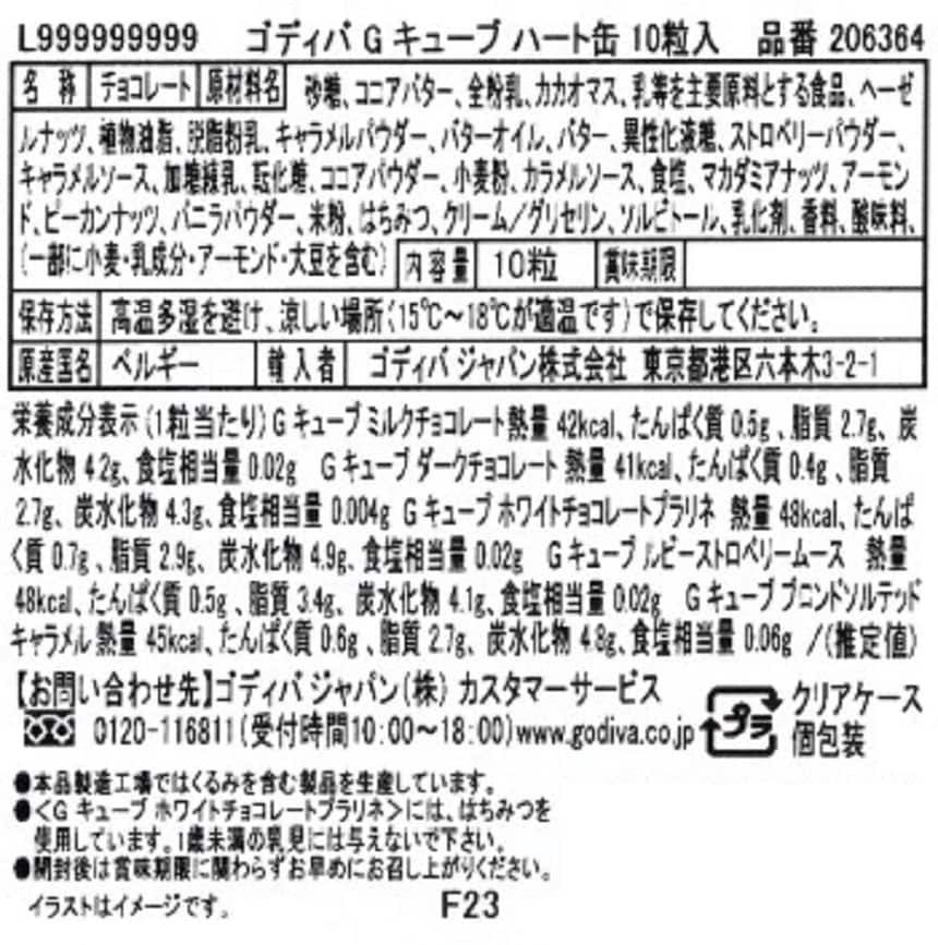 [3箱]ゴディバ G キューブ ハート缶 10粒入 | ハート形の缶に5種類のGキューブを10粒詰め合わせた、カジュアル&キュートなバレンタインコレクションです。