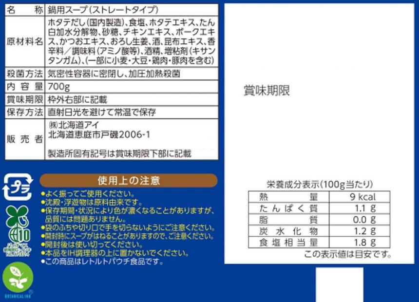 北海道産帆立の干し貝柱から自社で抽出しただしを贅沢に使用しているため具材にほたてを入れなくても帆立の香りをお楽しみ頂けます。