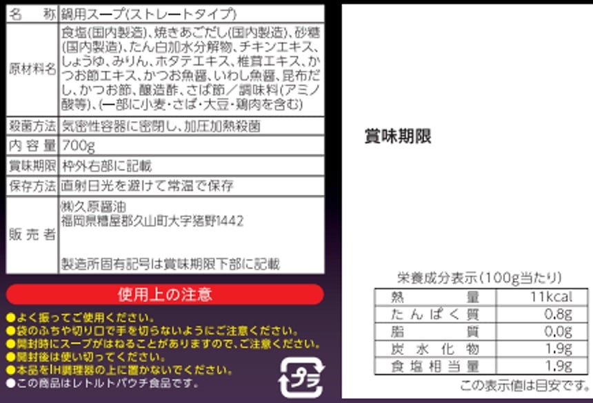 ・(新)海鮮寄せ鍋醤油 700g×2個