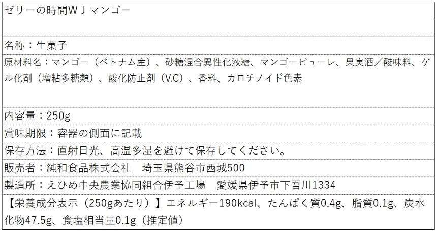 ・ゼリーの時間WJ マンゴー 250g×24個 - 賞味期限