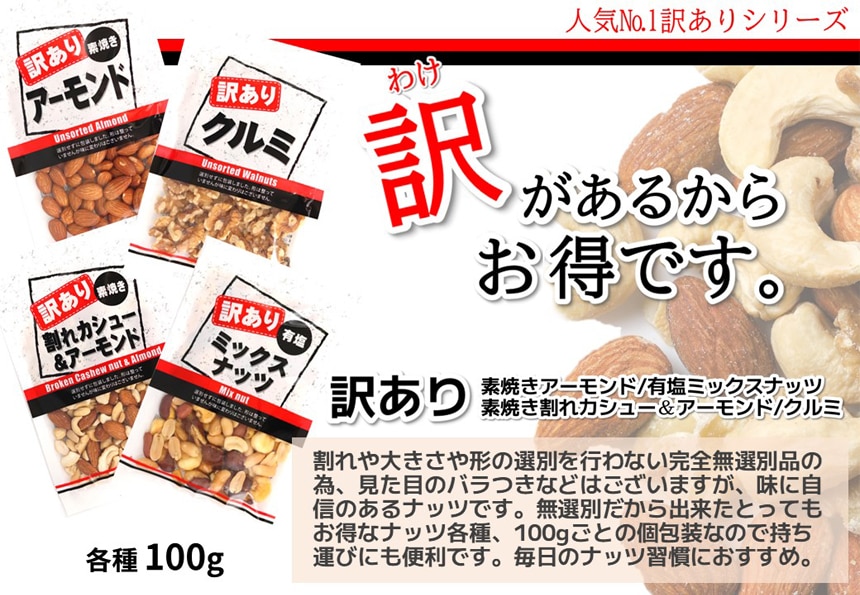 - 訳ありくるみ / 訳あり割れカシュー&アーモンド / 訳ありミックスナッツ