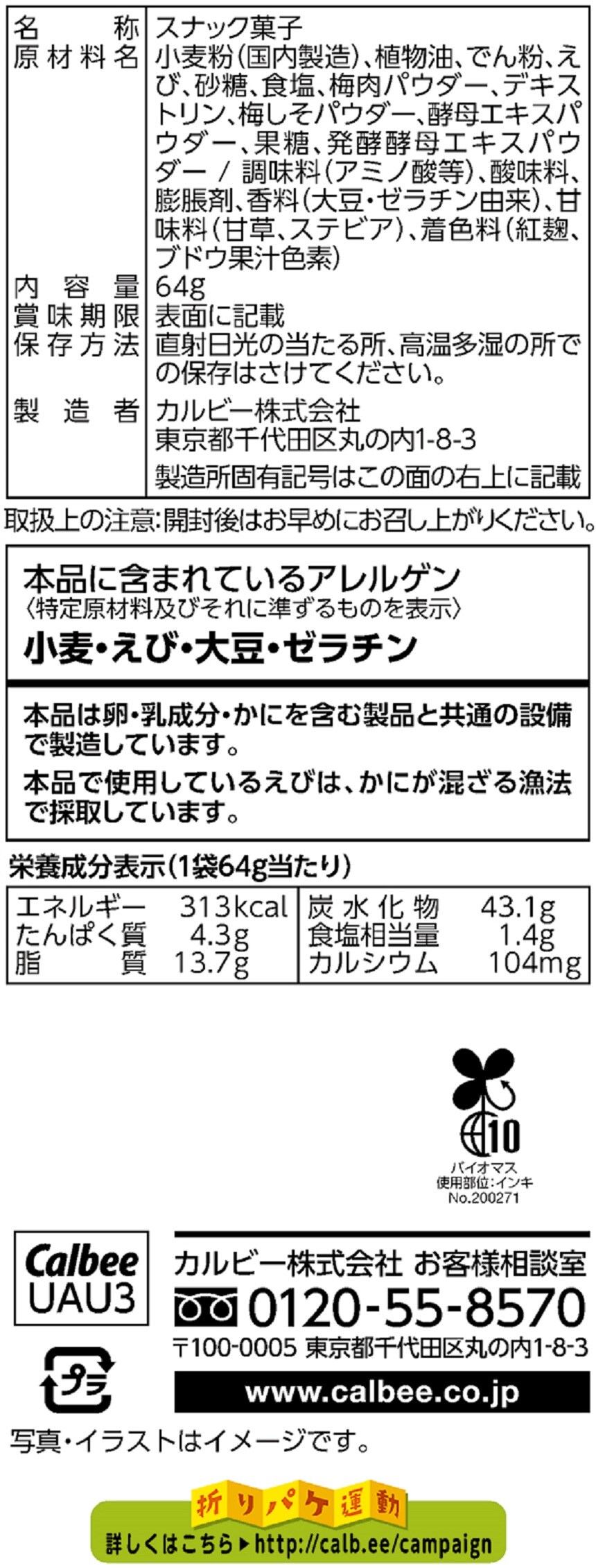 [24袋]カルビー かっぱえびせん 紀州の完熟梅味 64g | 絶妙な酸味とほどよい甘みが、サクサク食感と香ばしいえびの風味によく合います。