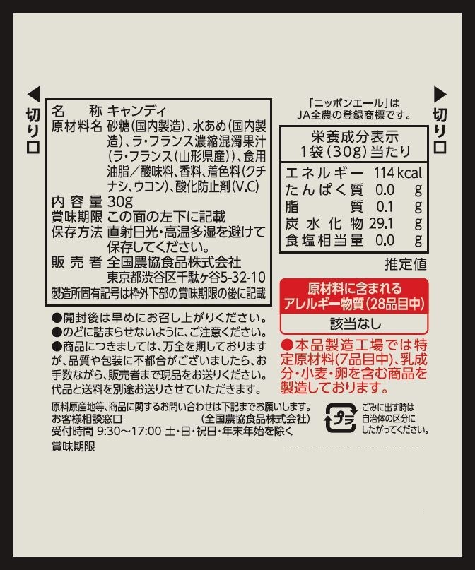 山形県産ラ・フランスの果汁を使用した小袋タイプのキャンディです。