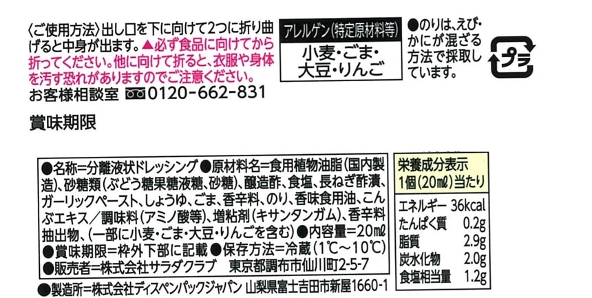 [180個]サラダクラブ チョレギサラダドレッシング 20ml | ごま油、ねぎ、にんにくのコクとうまみが特長のチルドタイプの使い切りドレッシング