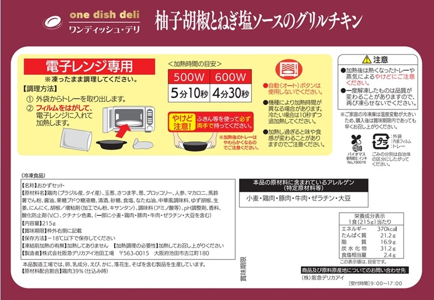 ・柚子胡椒とねぎ塩ソースのグリルチキン 215g×1食
