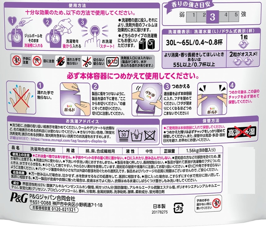 - ボールド ジェルボール4D 洗濯洗剤 心安らぐホワイトラベンダー&ジャスミンの香り つめかえ 超メガジャンボ 88個