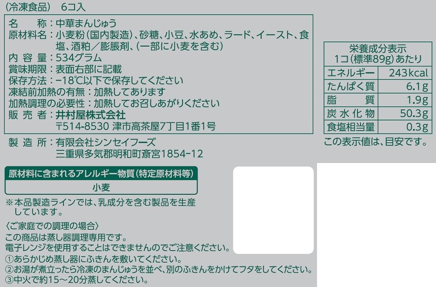 - 井村屋 あんまん 534g(89g×6個入) / ピザまん 480g(80g×6個入)