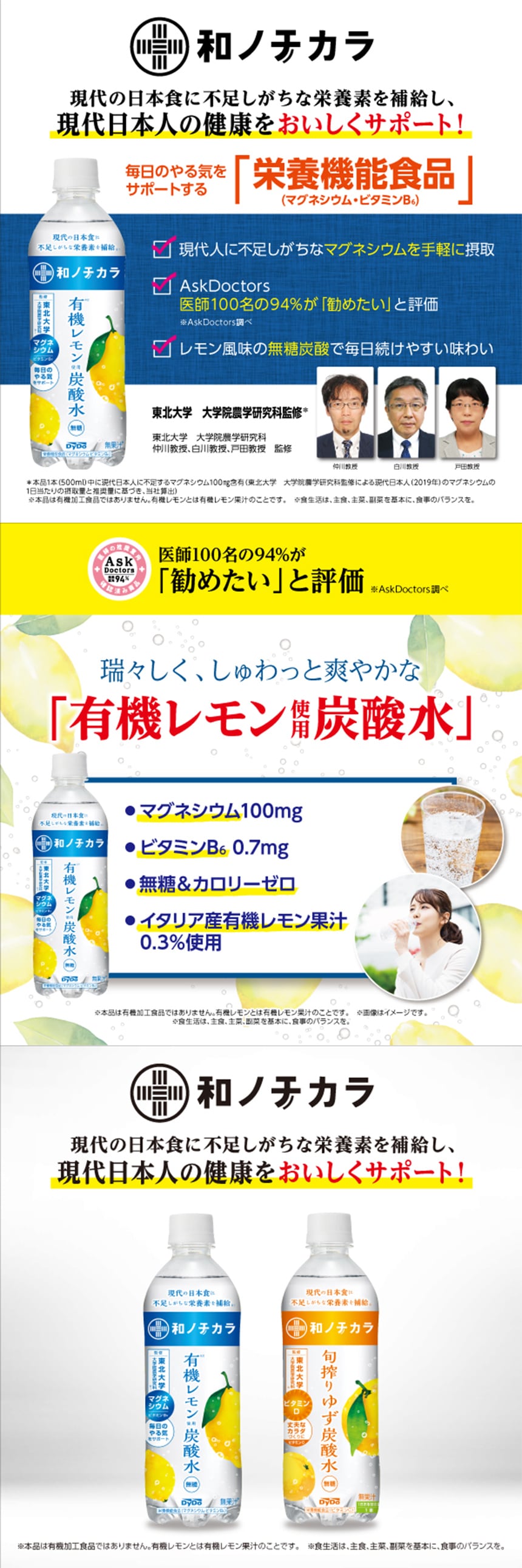 ●第1弾は、マグネシウムとビタミンB6が補給できる、レモンの無糖炭酸!
