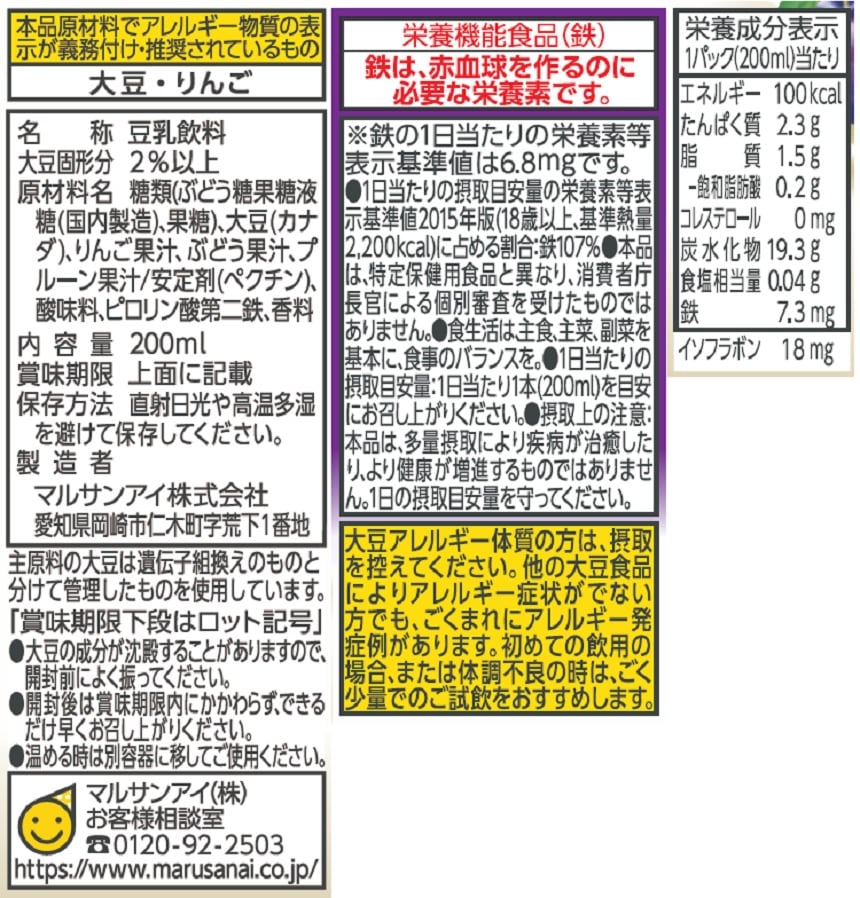 本品は、1日分の鉄分※を摂取できる栄養機能食品の豆乳飲料です。