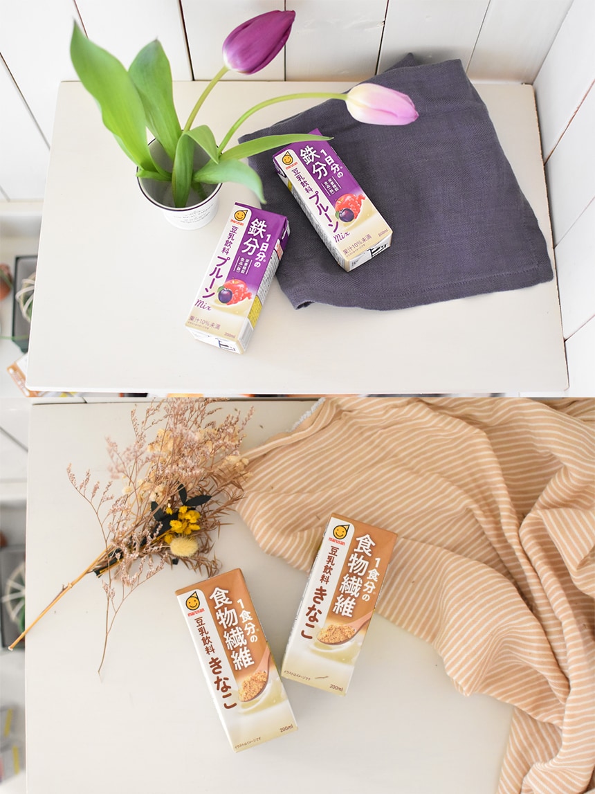 - 1日分の鉄分 豆乳飲料 プルーンmix 200ml / 1食分の食物繊維 豆乳飲料 きなこ 200ml