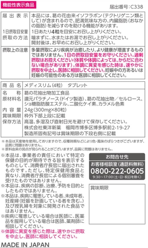 [18個]東洋新薬 メディスリム(4粒)タブレット 24g | 肥満気味な方の内臓脂肪(おなかの脂肪)を減らすのを助けるサプリメント