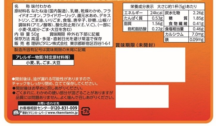 [12個]理研ビタミン リケン ふりかけるザクザクわかめ食べるラー油味 50g | ザクザク食感が楽しい、"食べるラー油味"のわかめふりかけ。