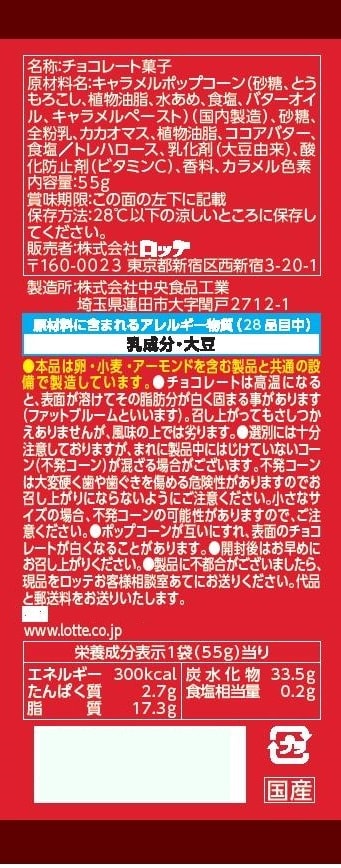 ポップコーンの軽い食感とガーナミルクの甘さが相性バッチリで、次々に食べたくなるおいしさです。