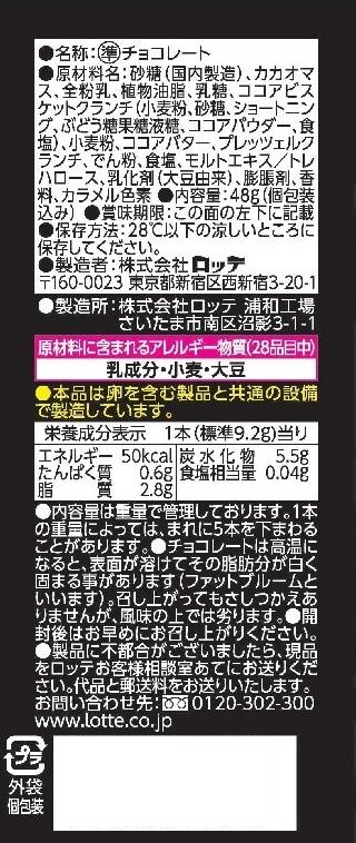 [48袋]ロッテ ザクザクやみつきクランキー パーソナルパック 48g | ココアビスケットクランチやプレッツェルとパフの食感。ウマくてザクザクな食感をお楽しみください!