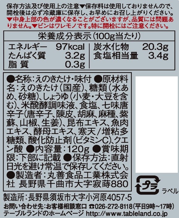 [30個]テーブルランド 七味唐からし入りなめ茸 120g | ピリッとした七味唐からしの辛さが美味しいなめ茸です。
