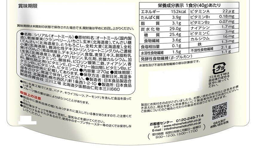 - 日食 そのまま食べておいしいオートミール 270g