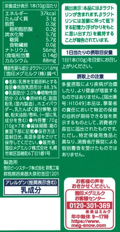 [計168杯]【機能性表示食品】雪印メグミルク 記憶ケアスキムβラクトリン スティックタイプ 10g×7本入 | 加齢に伴って低下する記憶力(手がかりをもとに思い出す力)を維持する脳機能サポートスキム