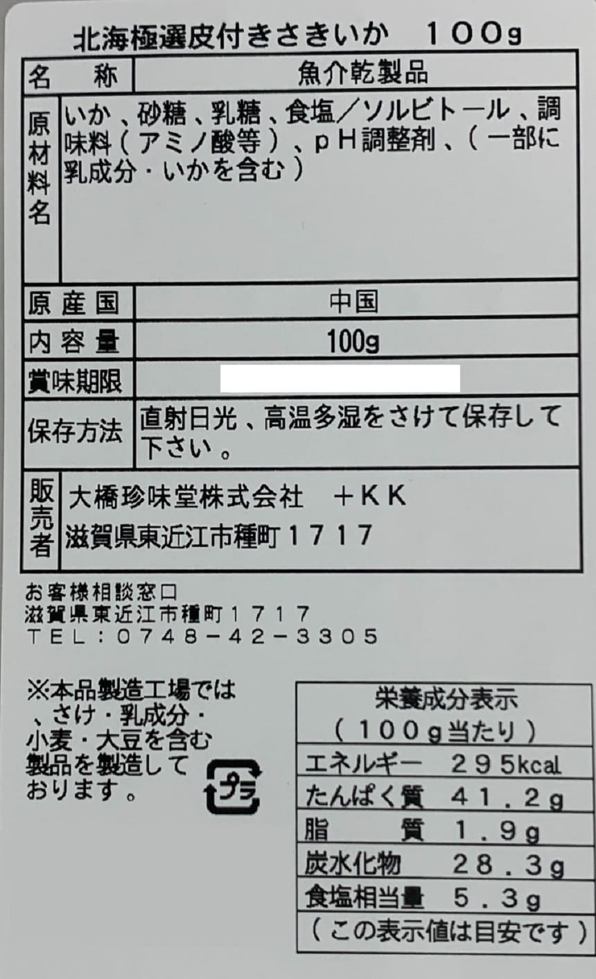 [10袋]大橋珍味堂 北海極選 皮付きさきいか 100g | 便利なチャック袋に入ったいかの大袋。