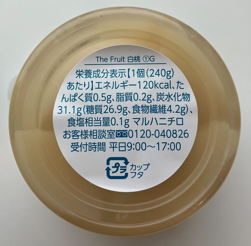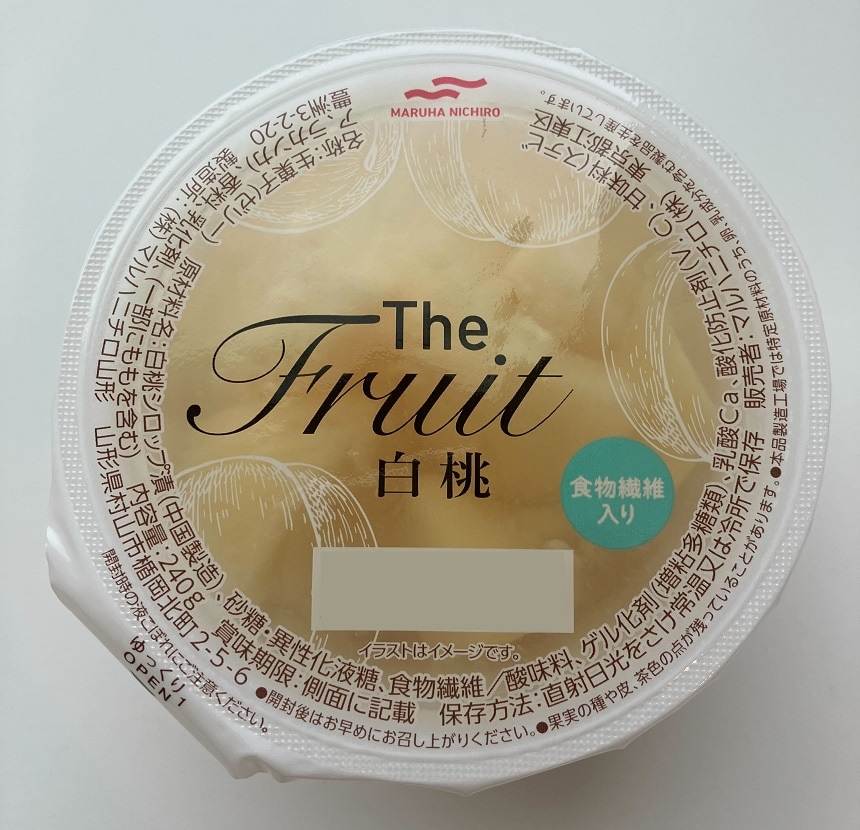 白桃の果肉入りのヨーグルト風ゼリーです。