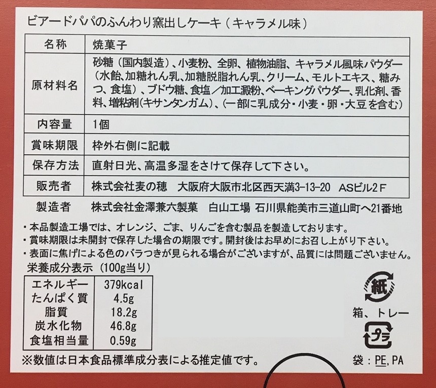 ・ビアードパパのふんわり窯出しケーキ(キャラメル) 6個 - 賞味期限